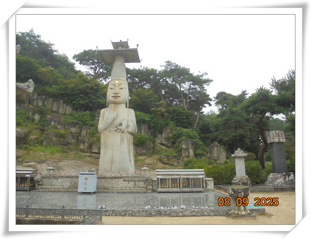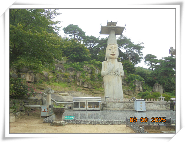 관촉사에 가면 저렇게 낮고 조그만 산에 무슨 절이 있을까 하는 의구심이 생기지만 경내에 들어서면 넓은 마당에 서있는 거대한 미륵불의 인자한 미소를 보는 순간 놀라고 만다. 국보 제323호 석조미륵보살입상은 은진미륵으로 더 많이 알려져 있으며 우리나라에서 가장 큰 미륵불이며 높이가 18m로 석조불상으로는 동양 최대라고 한다.