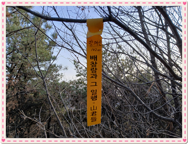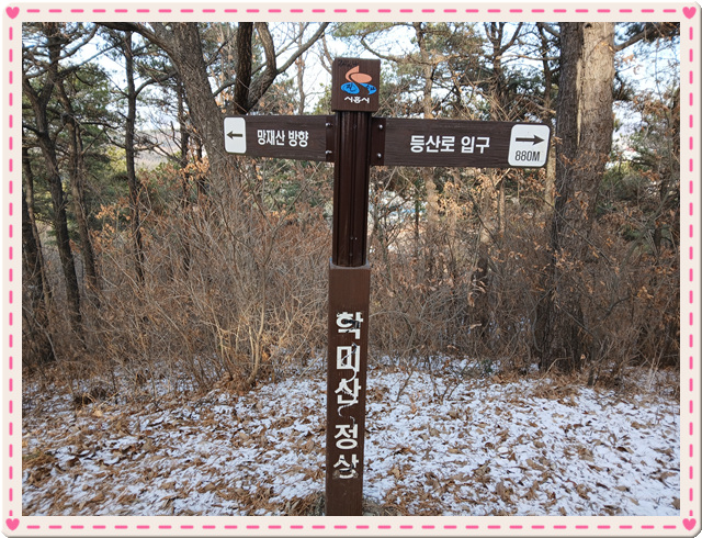 신현동행정복지센터~태산아파트 후문~학미산(94m)~안살미산~무리재산~학미산 1봉~봉두정~망재산(102m)~역순으로 하산