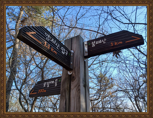 현대오일뱅크~지성정밀~성우기어~성원에어텍~능선(접선)~정상 전망대 300m 이정목(좌)~봉재산(148m)~능선 원위치 이정목~양지정~양지산(151m)~길마산(111m)~동살미산(64.3m)~역순으로 하산
